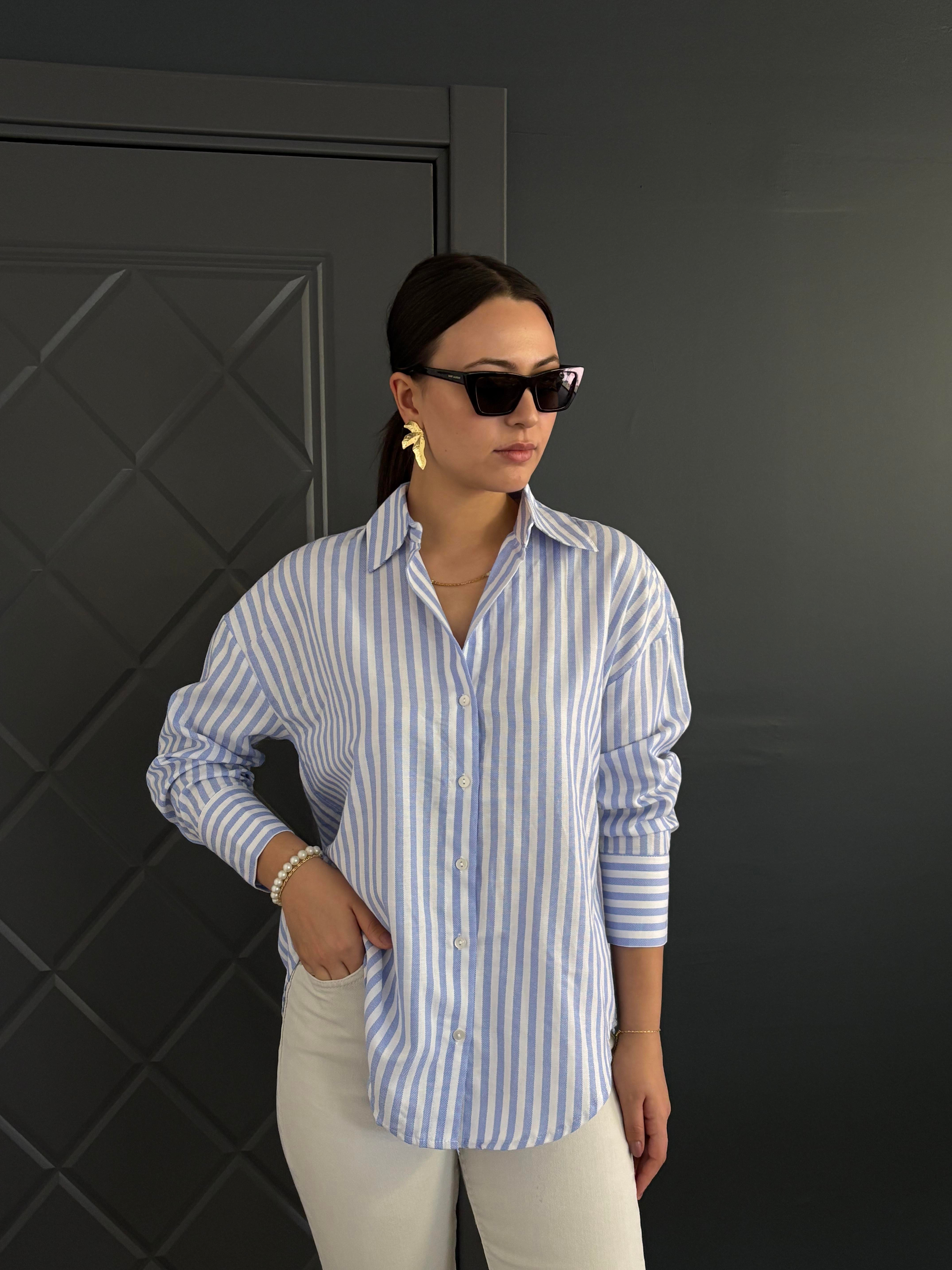 BEYAZ ÇİZGİLİ MAVİ GÖMLEK
