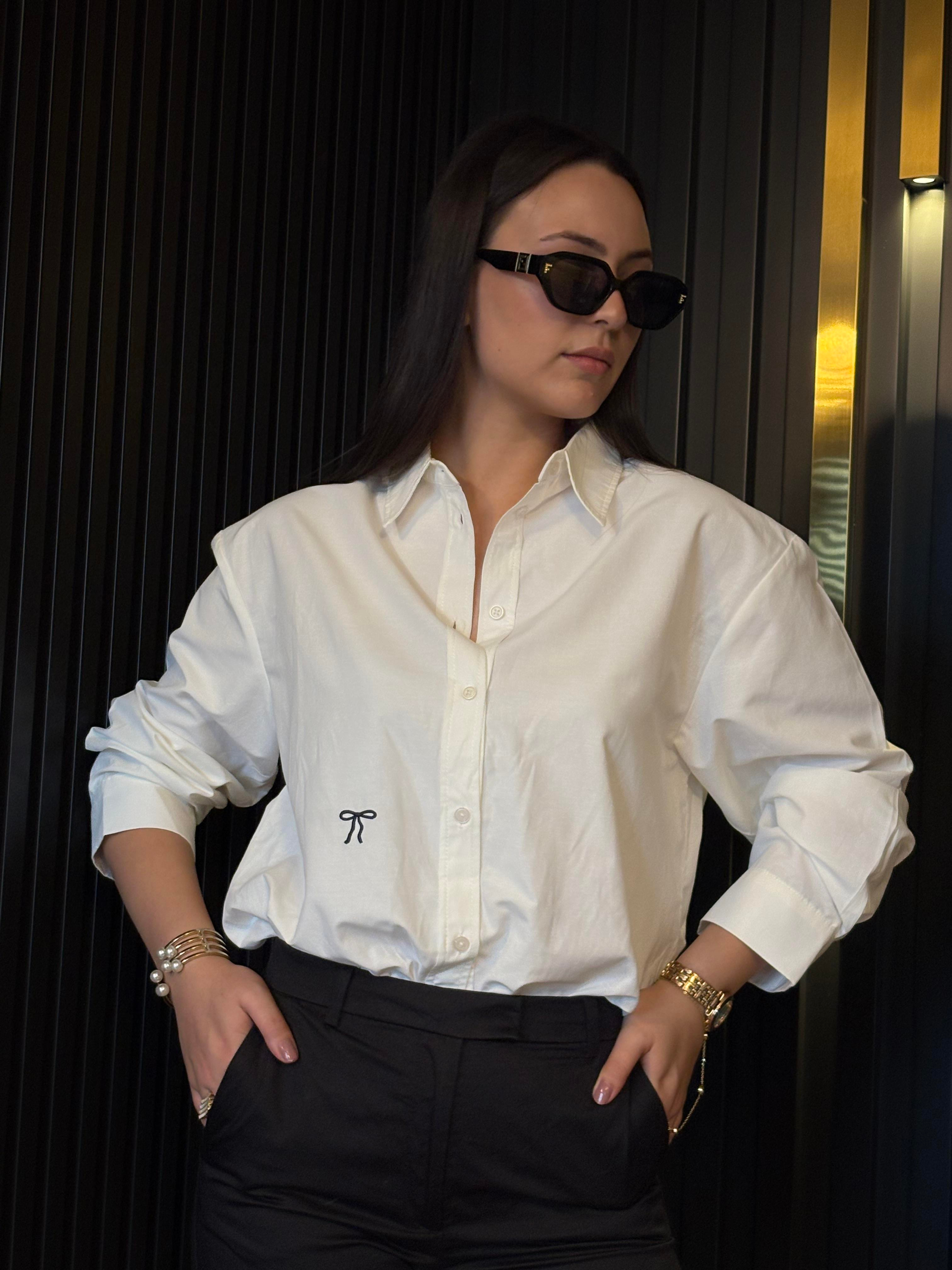 BEYAZ KURDELE İŞLEMELİ GÖMLEK