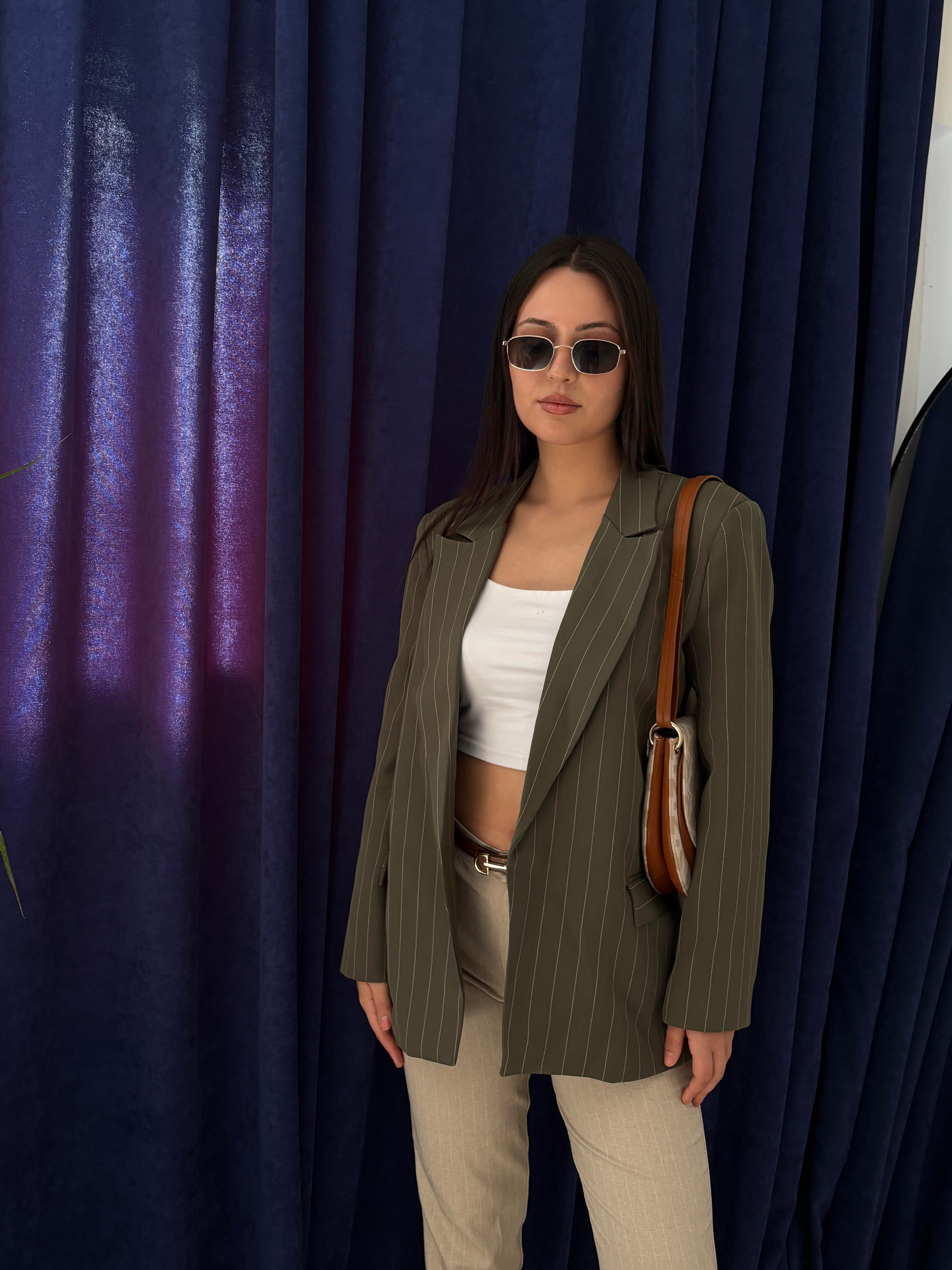 HAKİ ÇİZGİLİ BLAZER CEKET
