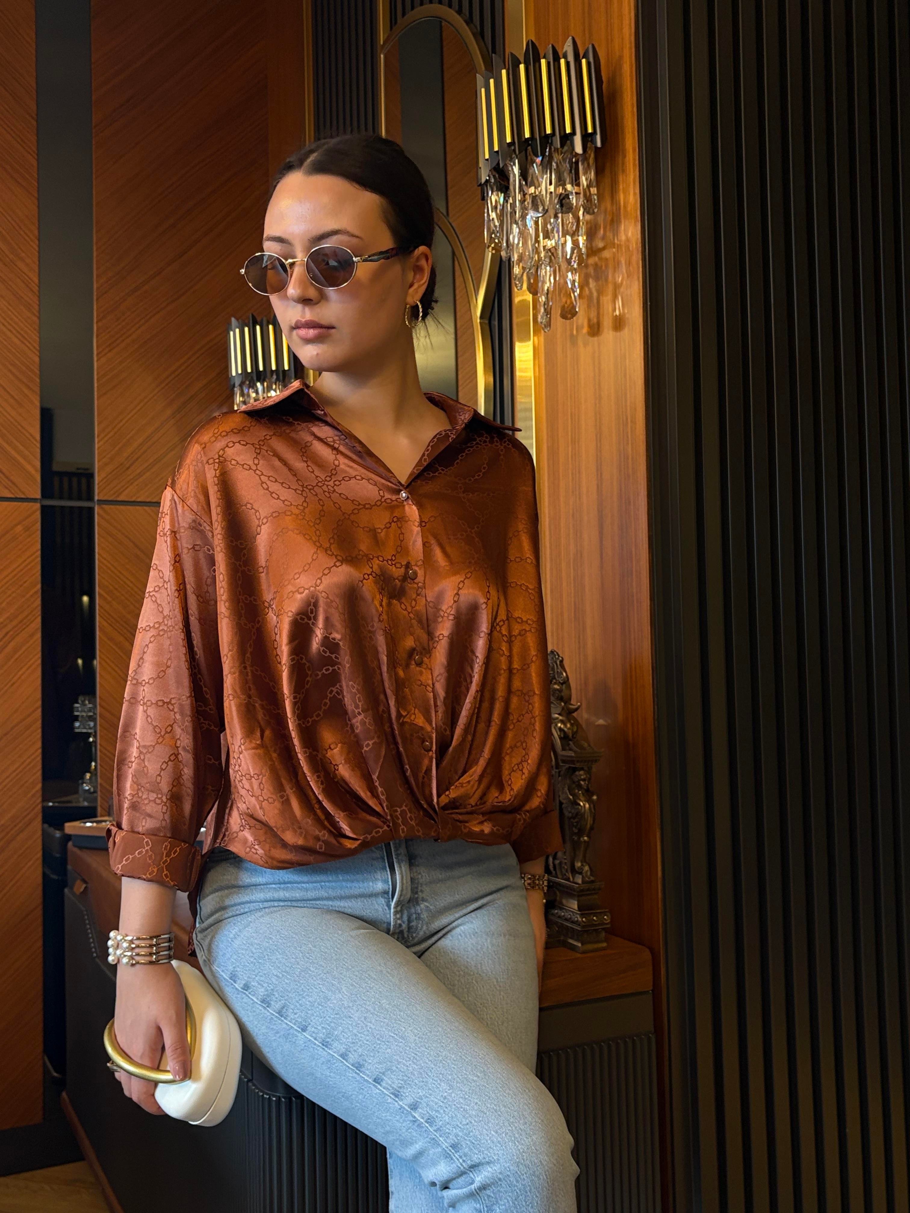 KAHVERENGİ BEL DETAYLİ GÖMLEK